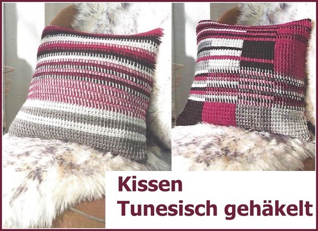 Kissenhulle Hakeln Zickzackmuster Tunesisch